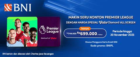Promo berlangganan Paket Diamond All Screen 1 Tahun hanya Rp699.000 khusus menggunakan Kartu Kredit BNI